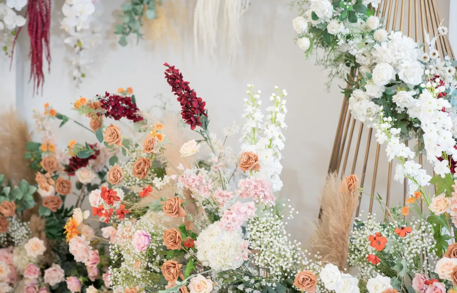 • بک‌دراپ‌های گل برای عکاسی: ایجاد یک دیوار گل یا سازه‌ای زیبا برای ثبت عکس‌های خاطره‌انگیز.