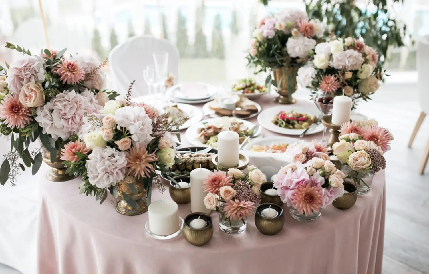 • نقطه کانونی بصری ایجاد می‌کند: یک جایگاه عروس و داماد که با ظرافت گل آرایی شده، یک سفره عقد چشم‌نواز یا یک ورودی باشکوه، نگاه همگان را به خود جلب کرده و تأثیری ماندگار در ذهن مهمانان حک می‌کند.